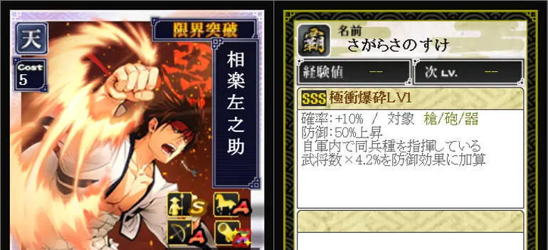 部隊内武将の全スキルの卓越追加確率が20%上昇(模倣不可・特殊効果は自部隊内では重複不可)